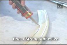 Temporarily clamp, tape or pin the flexible profile in place, starting in the middle of the arch working outwards to the ends so the material is not stretched and flat spots in the curve are eliminated.