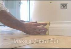 Make a clean cut on one end of the baseboard and then lay it in place to determine the exact length of the piece before cutting the other end… finishing the job as you would with casings or crowns