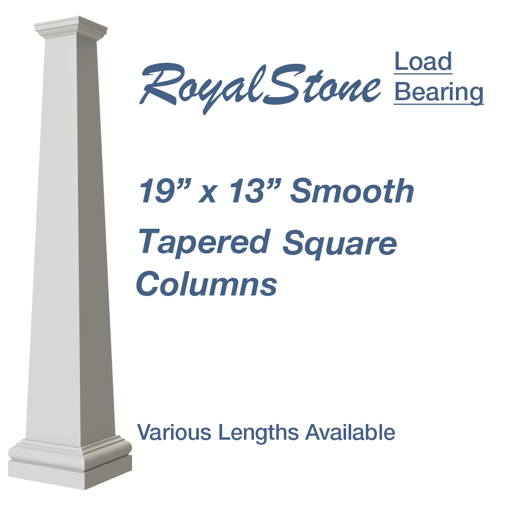 These Polymer Stone Columns are created using a mixture of the finest polymer resin and ground limestone, with pigmentation added to order, leading to a decorative stone textured or smooth column that is dependable, durable and virtually maintenance free. Color is fully permeated through the walls of the column creating greater longevity and consistency. RoyalStone Polymer Stone columns are available in a smooth or textured finish, fluted or plain, round and square. Even though these stone styled columns weigh less than one half the weight of their stone or concrete counterparts, Crown-Molding.com RoyalStone columns provide comparative tensile strength and aesthetic appeal.