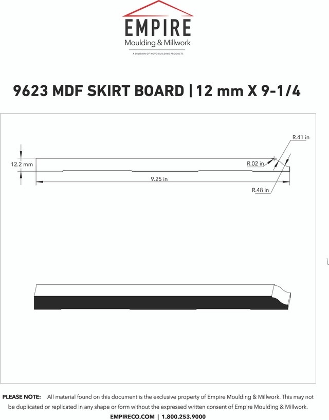 Buy the Empire 9623 1/2 x 9-1/4 inches MDF Princeton Skirt Board on sale for a great price at our online store!