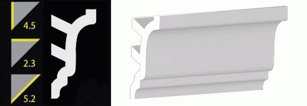 Products Related To: 4-1/2″ No-Nail Crown Moulding (4 Inch Sample of NN452)