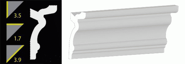 Crown-Molding.com is your online dealer for the 3-1/2″ No-Nail Crown Moulding Pre-Cut MATCHING CORNERS for (NN354) in stock and ready to ship.